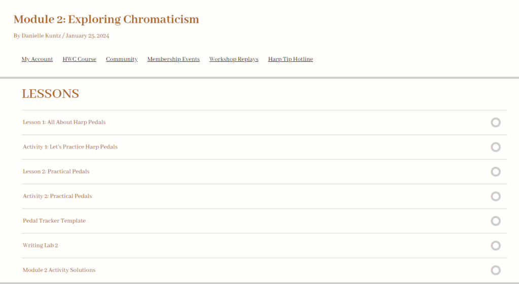 • You will walk away from this course with a fully written, playable piece for the harp