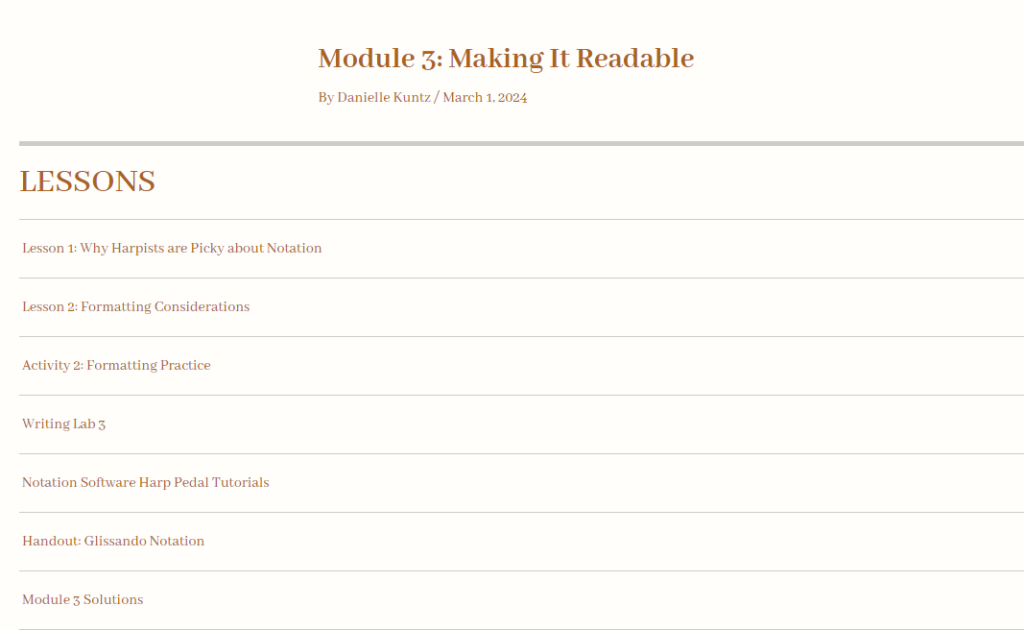Harp Writing for Composers is a 5-module course that will give you a framework to navigate writing for the harp